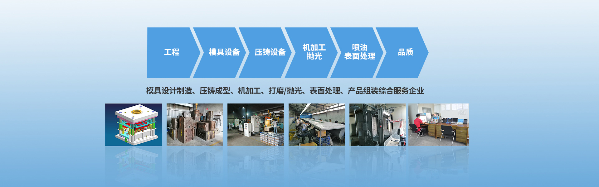 公司現有模具部、壓鑄部、機加工部、拋光打磨部,建廠以來,得益于生產方式、技能、管理的持續改進,我們的業務不斷擴大,取得了平穩的發展。